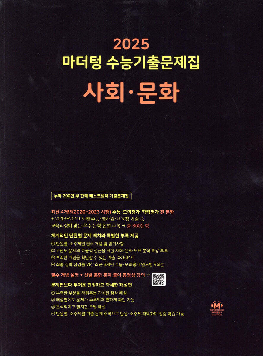 2025 마더텅 수능기출문제집 사회·문화 (2024년)