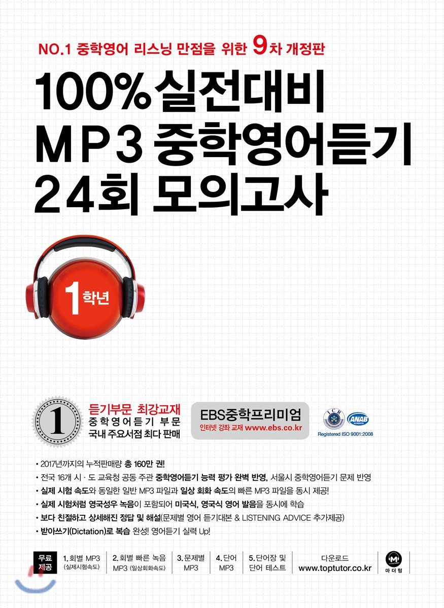 100% 실전대비 MP3 중학영어듣기 24회 모의고사 중학교 1학년 (2018년)