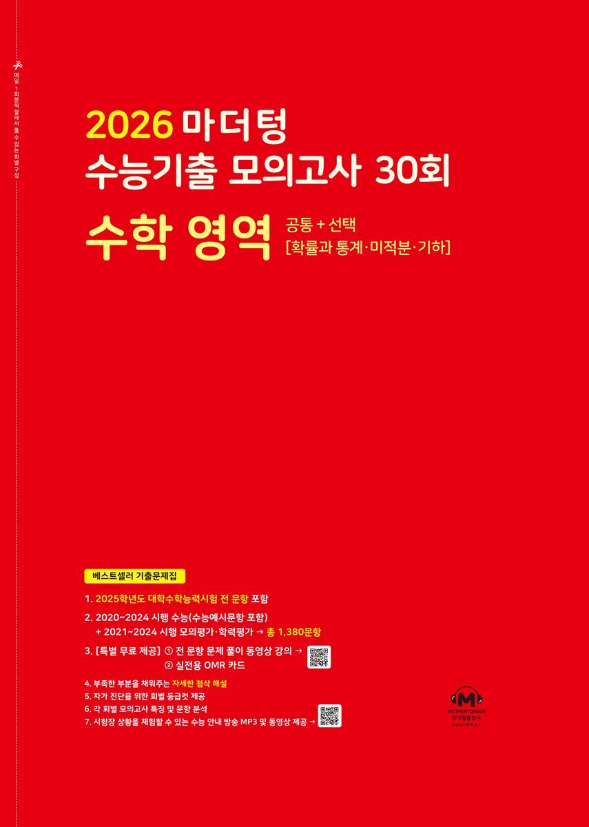 [eBook] 2026 마더텅 수능기출 모의고사 30회 수학 영역(문제+해설) (총2권)