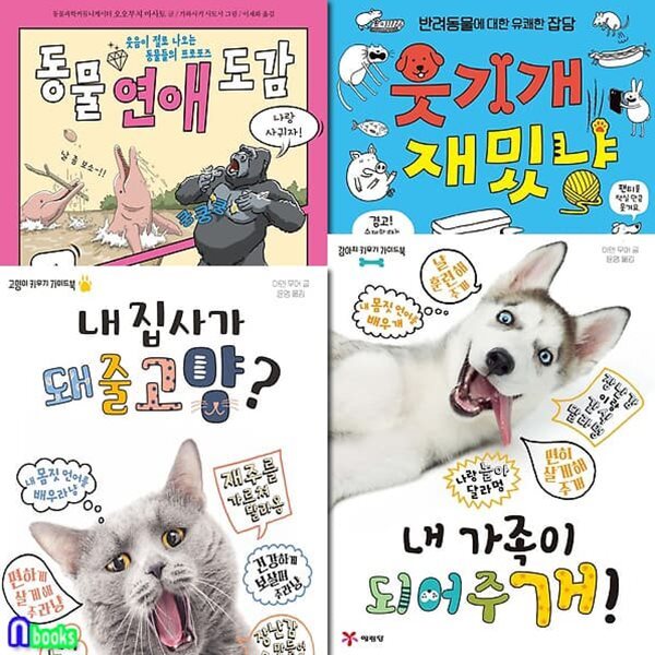 강아지+고양이 키우기 가이드북+웃기개 재밌냥+동물 연애 도감 4권 세트/내집사가돼줄고양.내가족이되어주개외