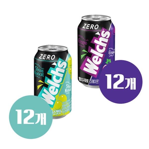 [문구/GIFT] [농심]웰치스 웰치 제로 칼로리 포도 12캔 + 샤인머스켓 12캔