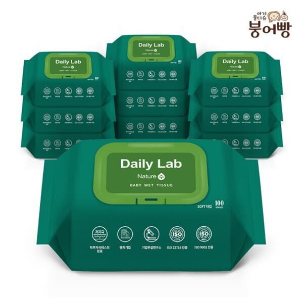[문구/GIFT] 붕어빵 데일리랩 네이쳐 수 물티슈 100매 X 10팩