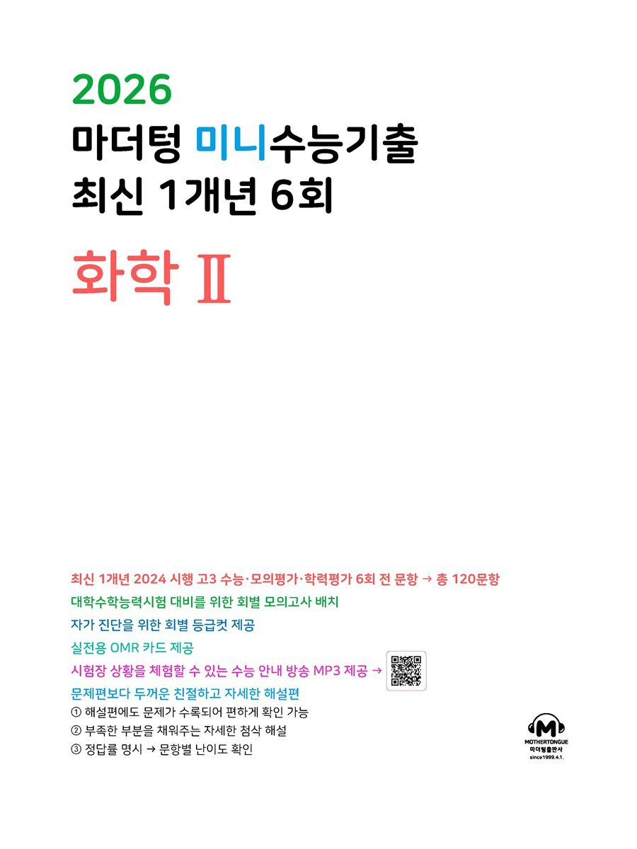 [eBook] 2026 마더텅 미니수능기출 최신 1개년 6회 화학Ⅱ