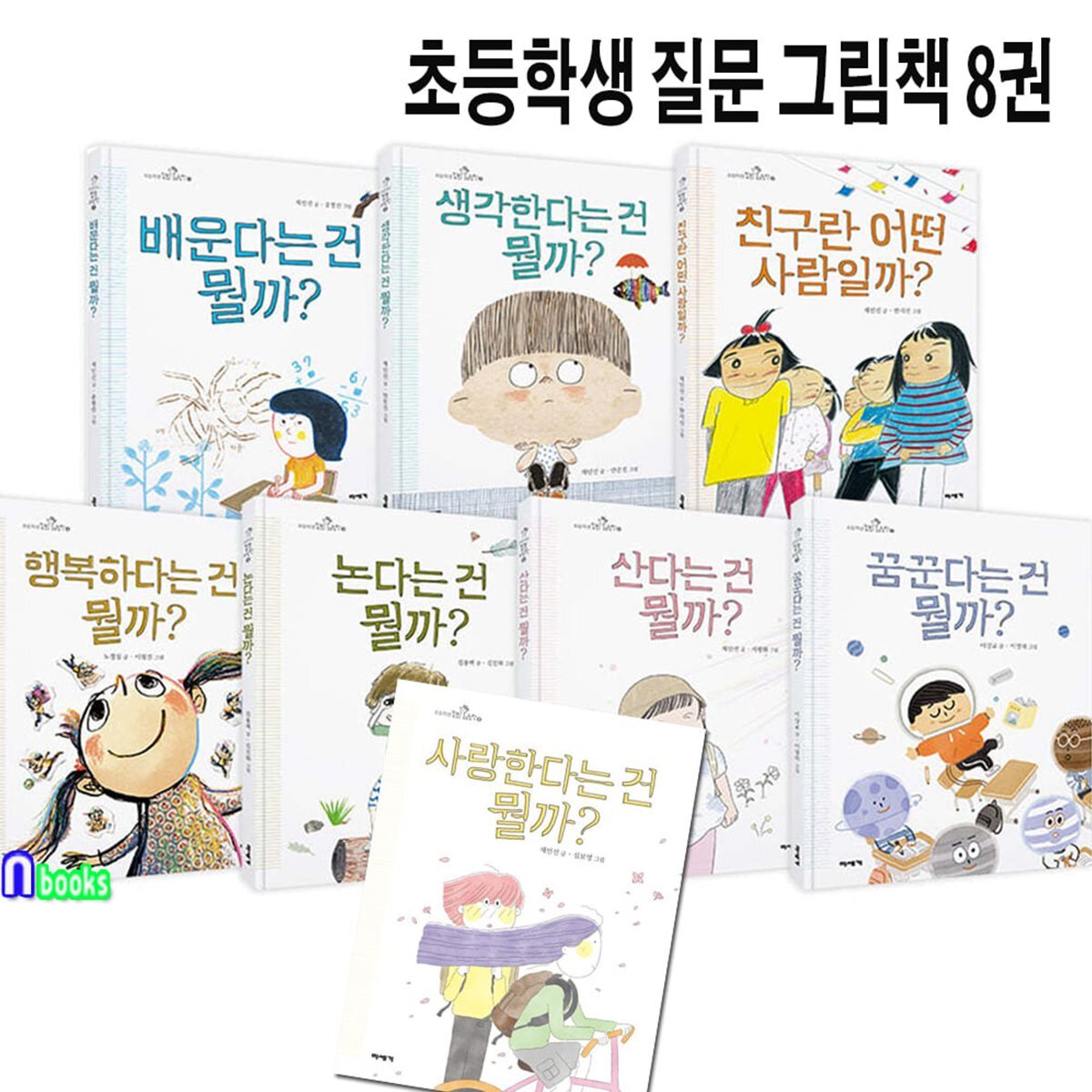 초등 저학년 인문그림책 초등학생 질문 그림책 8권 세트/사랑한다는건뭘까.배운다는건뭘까.친구란어떤사람일까.산다는건.생각한다는건.꿈꾼다는건.논다는건.행복하다는건