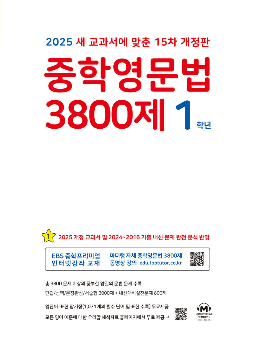 중학영문법 3800제 1학년 (2025년)