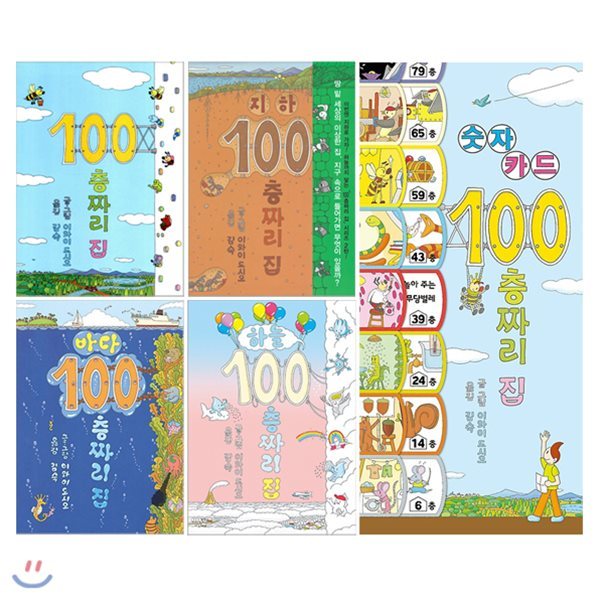 100층 집+지하+바다+하늘+숫자카드 전5권 세트(유아도서+색칠북+색종이+스티커 증정)