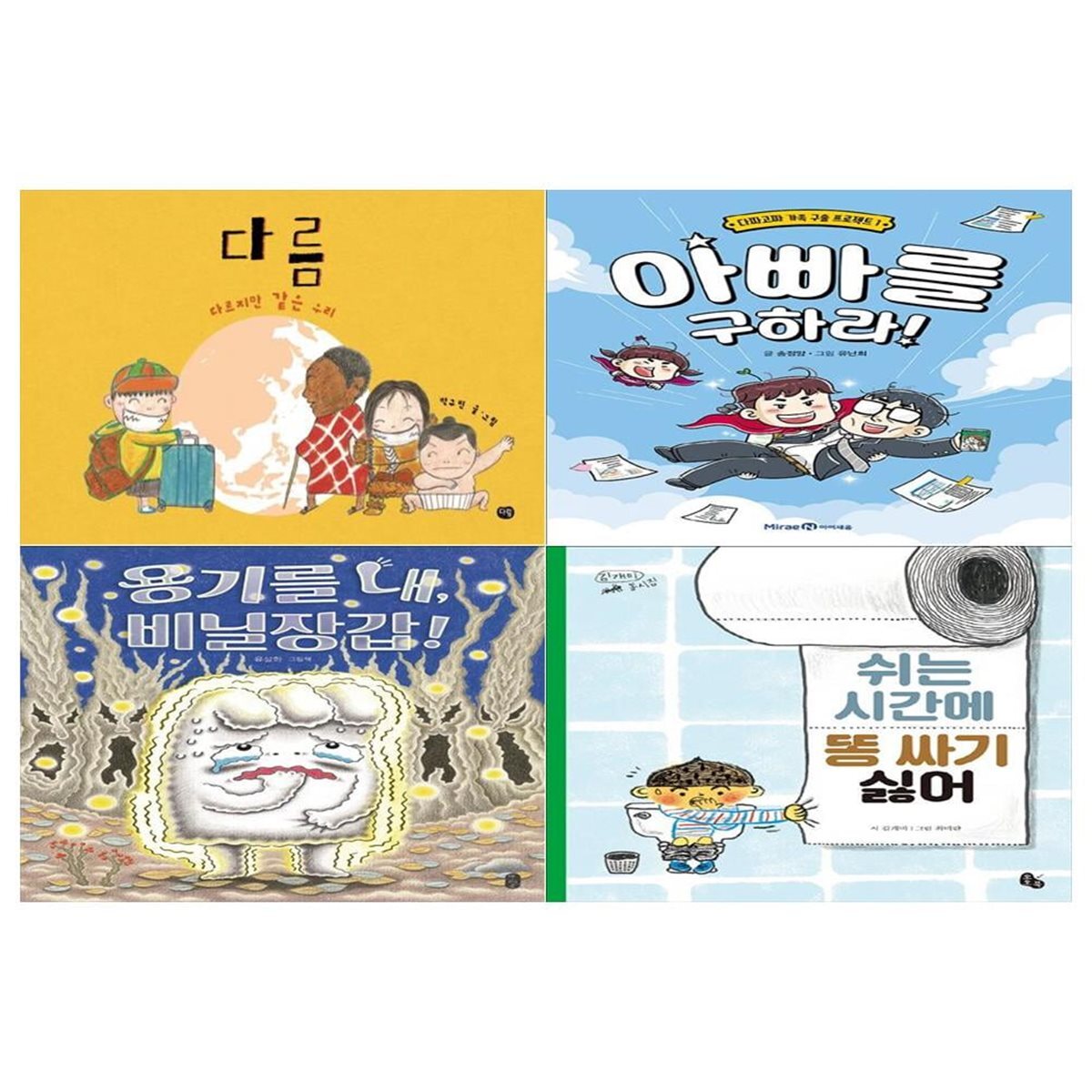 초등 2학년 교과서 수록도서 4권세트(다름+아빠를 구하라+용기를 내 비닐장갑+쉬는 시간에 똥 싸기 싫어)
