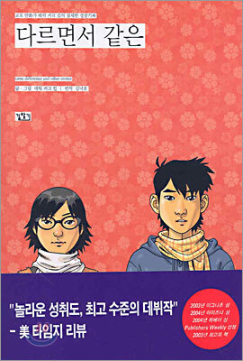 이것역시고2때읽은것.이책에는표지에나와있는두주인공의이야기를다룬[다르면서같은]이야기가책의반을차지하고있고나머지반은약7개정도의짤막짤막한소설들이계속된다. 10대들만이생각할수있는것들을가끔은그들이즐겨쓰는비속어를사용해서표현하기도하고. 공평하지않은것들을10대의눈과입으로비판하기도하고. 상당히공감이많이갔던작품중에하나다. 아.그림이라고대충대충읽지말고꼼꼼히읽어보길바래요아주재밌답니다.