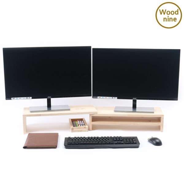 [문구/GIFT] 우드나인 원목 듀얼 모니터받침대 2단