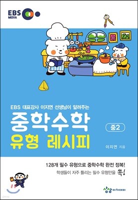 『중학수학 유형 레시피』는 학생들이 어려워하고 자주 틀리는 문제를 유형별로 모아 선생님의 손글씨 풀이로 설명해주는 책이다. 같은 유형의 예제를 나란히 제시하여 직접 풀어보게 함으로써 유형을 완벽히 익힐 수 있도록 하였다. 또한 유튜브 채널 ‘중학수학 유형 레시피’를 통해서 이 책에 대한 설명과 책에 수록된 유형 문제들을 선생님의 설명과 함께 직접 손 글씨로 풀이하는 영상을 제공하고 있다. 128개 필수 유형으로 중학수학을 정복해보자.